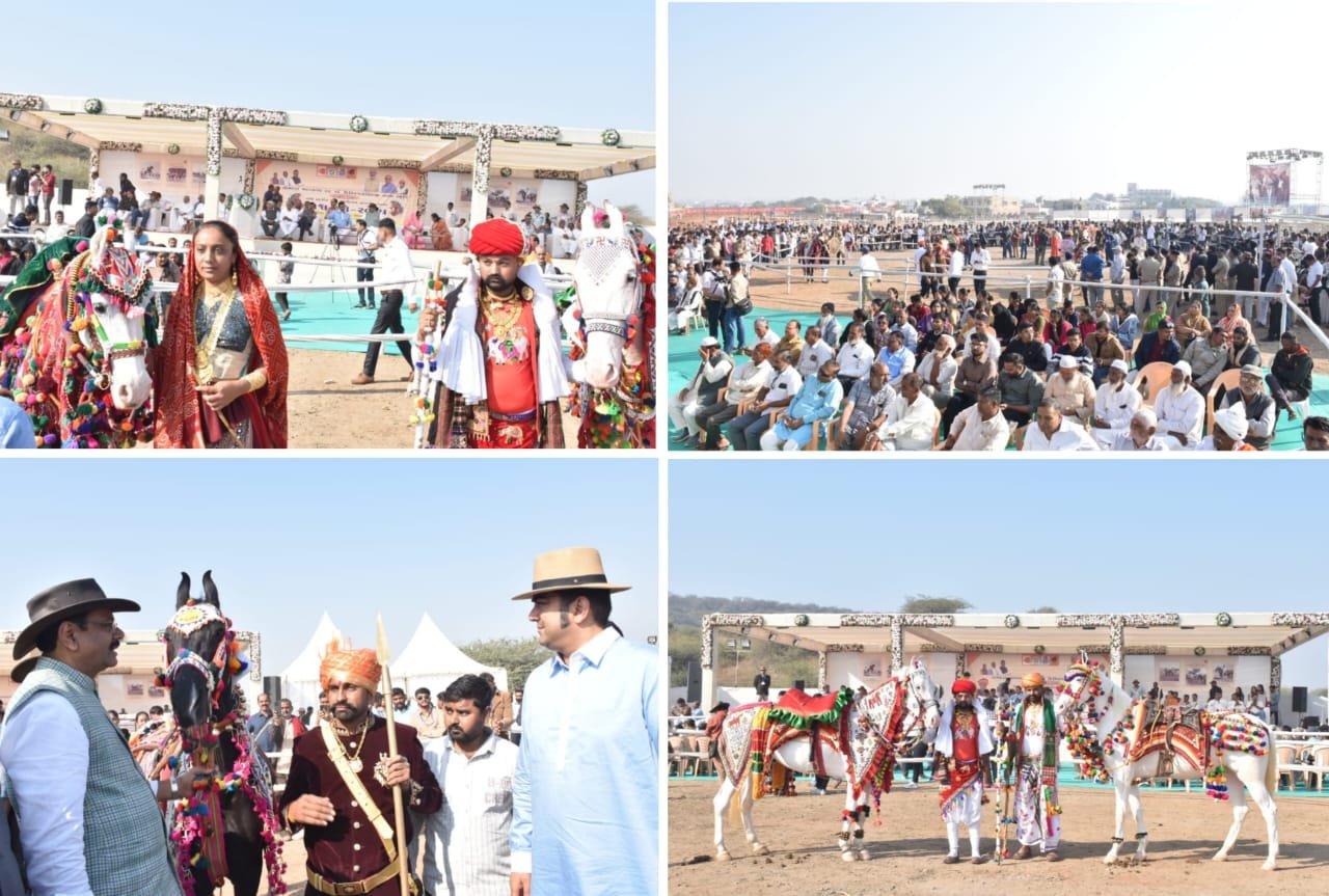 આ કાર્યક્રમમાં બીમાર ઘોડાઓને હેરાન ન કરવામાં આવે તે માટે સ્પર્ધા પહેલા બ્લડ સેમ્પલ અને યોગ્ય તપાસ બાદ ૩૦૦ થી વધુ રજીસ્ટ્રેશન પૈકી ૨૫૦ જેટલા ઘોડાઓએ વિવિધ સ્પર્ધાઓમાં ભાગ લીધો છે. આ સાથે જ મહાનુભાવોની ઉપસ્થિતિમાં રાજકોટ પોલીસ માઉન્ટના અશ્વ સવાર પોલીસ જવાનોએ કરતબ પ્રદર્શન કર્યું હતું અને શ્રેષ્ઠ અશ્વ શણગાર સ્પર્ધા પણ યોજાઇ હતી. મહાનુભાવોના હસ્તે અશ્વ વિશેની માહિતી આપતા પુસ્તકનું વિમોચન કરવામાં આવ્યું હતું….