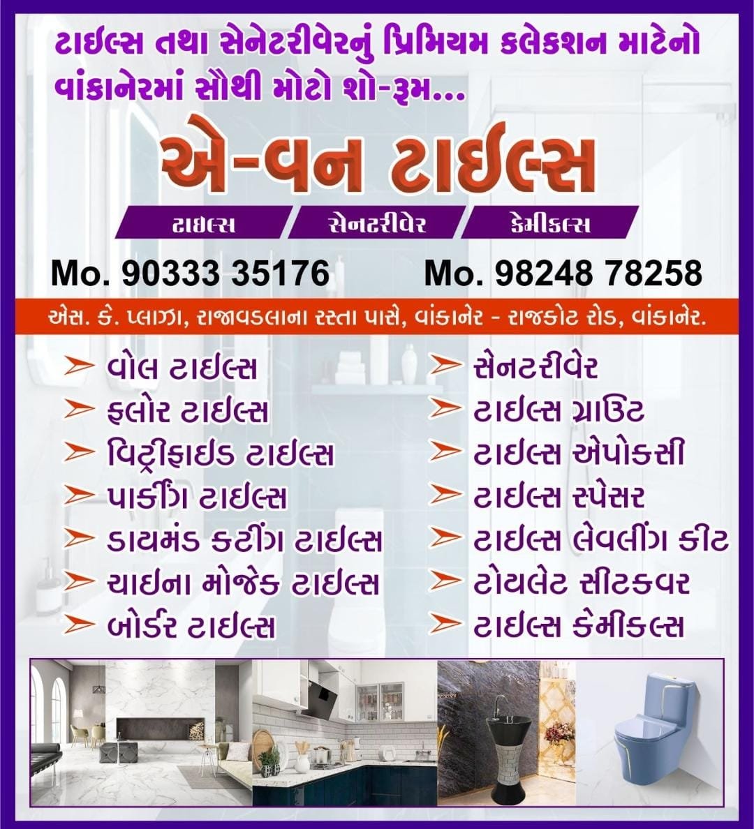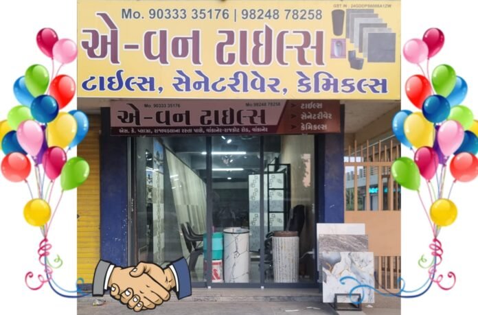 વાંકાનેર શહેર ખાતે સૌપ્રથમ ટાઇલ્સ તથા સેનેટરીવેરના પ્રિમિયમ કલેક્શન સાથે એ-વન ટાઇલ્સ શોરૂમનો પ્રારંભ….