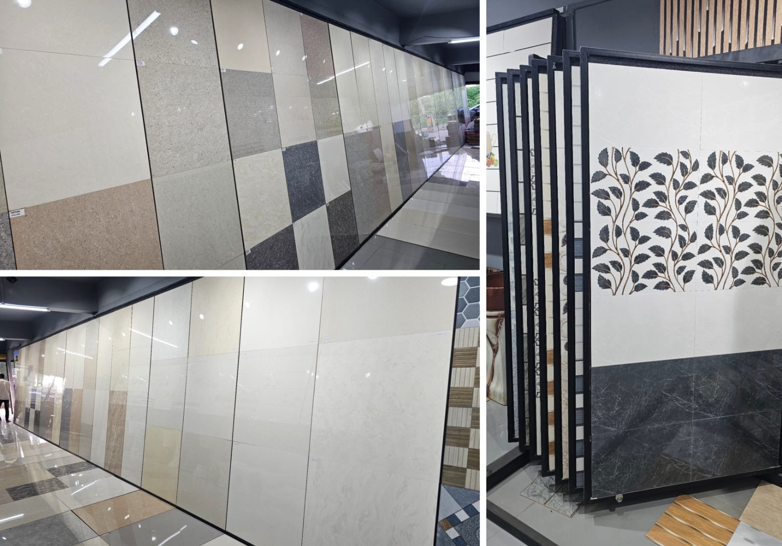 અમારે ત્યાંથી ગ્રાહકને વોલ ટાઇલ્સ, ફ્લોર ટાઇલ્સ, વિટ્રીફાઇડ ટાઇલ્સ, પાર્કિંગ ટાઇલ્સ, ડાયમંડ કટીંગ ટાઇલ્સ, ચાઇના મોજેક ટાઇલ્સ, બોર્ડર ટાઇલ્સ, સેનેટરી વેર, ટાઇલ્સ ગ્રાઉટ, ટાઇલ્સ એપોક્સી, ટાઇલ્સ સ્પેસર, ટાઇલ્સ લેવલીંગ કીટ, ટોયલેટ સીટ કવર, ટાઇલ્સ કેમિકલ્સ તથા ધાર્મિક ફોટા, તખતા તથા આપના ફોટા અને લખાણ મુજબ સ્પેશ્યલ ટાઇલ્સ બનાવી આપવામાં આવશે…