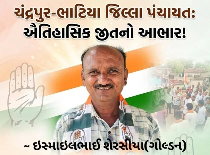 વાંકાનેર તાલુકાની ચંદ્રપુર જિલ્લા પંચાયત બેઠક પર ભારે ઉત્કંઠા અને રસાકસી બાદ આખરે વિકાસ, વિશ્વાસ અને સેવાની જીત થઈ છે. કોંગ્રેસના લોકલાડીલા અને લોક સંપર્ક ધરાવતા ઉમેદવાર ઇસ્માઇલભાઈ ફતેહભાઈ શેરસીયા (ગોલ્ડન)નો જંગી બહુમતીથી ભવ્ય વિજય થયો છે, ત્યારે તેમની આ શાનદાર જીત બાદ ઇસ્માઇલભાઈએ તેમના પર અતૂટ વિશ્વાસ મૂકનાર તમામ મતદારો, આગેવાનો અને કાર્યકર્તાઓનો હૃદયપૂર્વક આભાર વ્યક્ત કર્યો છે….