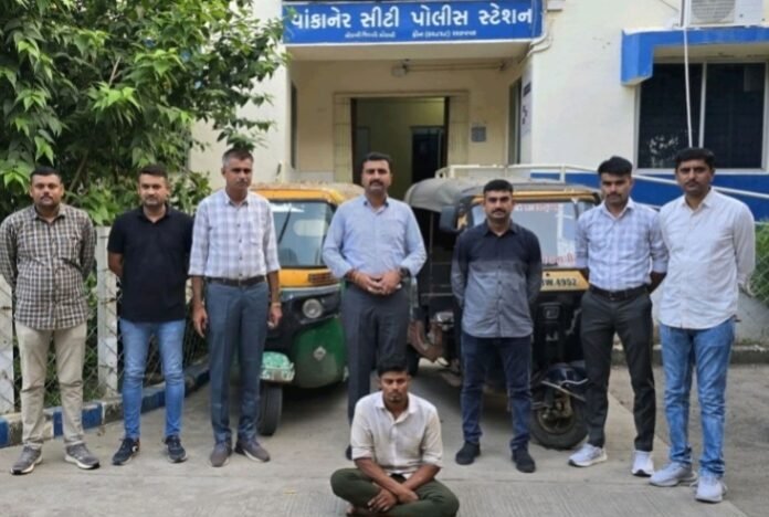 વાંકાનેર સીટી પોલીસ ટીમ દ્વારા ચોક્કસ ખાનગી બાતમીના આધારે વાંકાનેરની અમરસર ફાટક પાસેથી એક ઈસમને ચોરાયેલ રિક્ષા સાથે ઝડપી પાડી સઘન પૂછપરછ કરતા આરોપી ચોરીની કુટેવ ધરાવતો હોય જેની સામે અલગ અલગ પોલીસ મથકોમાં ચોરીના 12 ગુનાઓ નોંધાયેલા હોય, જેથી પોલીસે આરોપીની અટકાયત કરી અમદાવાદ તથા મોરબીથી ચોરાયેલ બે રીક્ષાના ગુનાને ઉકેલ્યા છે….