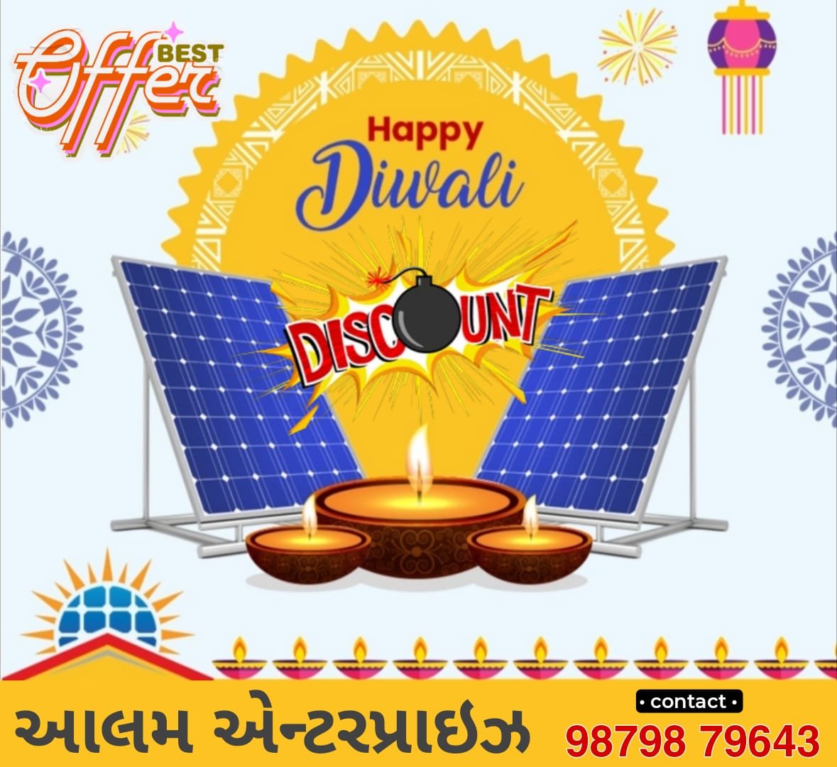 નવા વર્ષથી આપના ઘરનું લાઇટ બિલ કરો 0 : તહેવાર સ્પેશ્યલ ડિસ્કાઉન્ટ ઓફર સાથે સૌથી ઓછી કિંમત, શ્રેષ્ઠ સર્વિસ, 0 ડાઉન પેમેન્ટ, ભાંગ-તુટની ગેરંટી તેમજ સબસિડી સીધી બાદ મેળવો ફક્ત આલમ એન્ટરપ્રાઇઝ ખાતેથી….