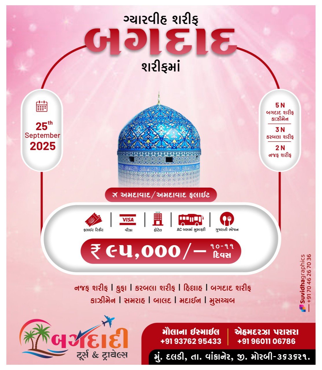• બગદાદ, કરબલા, નજફની જીયારત માટે બુકિંગ શરૂ…