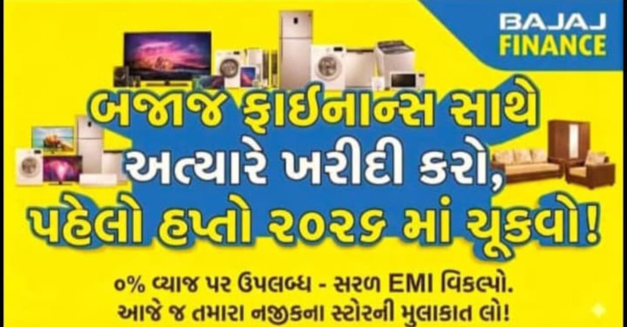 ખરીદો આજે…ભરો હપ્તા આરામથી 2026 માં…: રૂ. 4500 સુધી આકર્ષક ડિસ્કાઉન્ટ + 0% વ્યાજ અને એકદમ સરળ હપ્તાનો લાભ લેવા આજે જ બજાજ ફાયનાન્સ કરાવો….