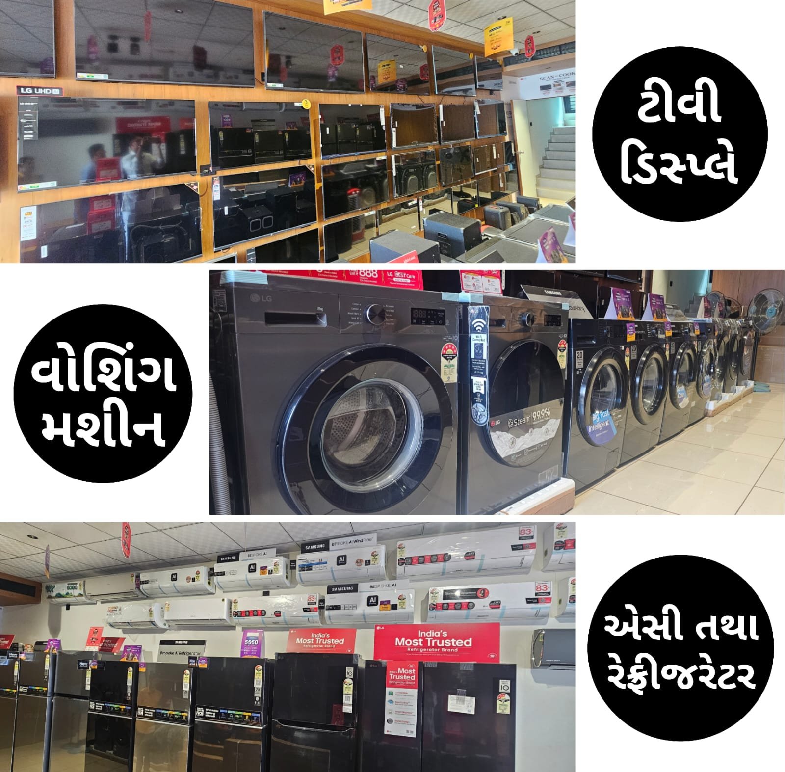• LG, SAMSUNG, HAIER, TCL, DAIKIN, WIBER સહિત નામાંકિત કંપનીની દરેક ઇલેક્ટ્રોનિક્સ આઇટમોની ખરીદી પર મેળવો દશેરા સ્પેશ્યલ ડિસ્કાઉન્ટ……