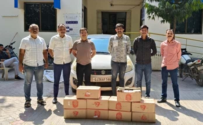 વાંકાનેર તાલુકા પોલીસ ટીમ દ્વારા ચોક્કસ ખાનગી બાતમીને આધારે વાંકાનેરની ઢુવા ચોકડી નજીક ઢુવા-માટેલ રોડ પરથી પસાર થતી મારૂતિ સુઝુકી કંપનીની સ્વિફ્ટ ડિઝાયર કાર નં. GJ 36 AF 1469 ને રોકી તલાસી લેતા કારમાંથી 240 નંગ બિયરના ટીન (કિંમત રૂ. ૩૦,૦૦૦) મળી આવતાં આ બનાવમાં પોલીસે કારમાં ડ્રાઇવરની બાજુમાં બેઠેલા આરોપી લાલજીભાઈ પ્રવિણભાઇ ડાભી (રહે. સોઓરડી, મોરબી)ને ઝડપી લીધો હતો, જ્યારે કાર ચાલક આરોપી અલ્પેશ ઉર્ફે ભોલો રાજેન્દ્રસિંહ ચાવડા (રહે. મુળી) નાસી જતાં પોલીસ કાર તથા બિયરના ટીન સહિત કુલ રૂ. 3,30,000 નો મુદ્દામાલ જપ્ત કરી બંને આરોપીઓ વિરુદ્ધ પ્રોહીબીશન એક્ટ હેઠળ ગુનો નોંધી કાયદેસરની કાર્યવાહી હાથ ધરી હતી.…