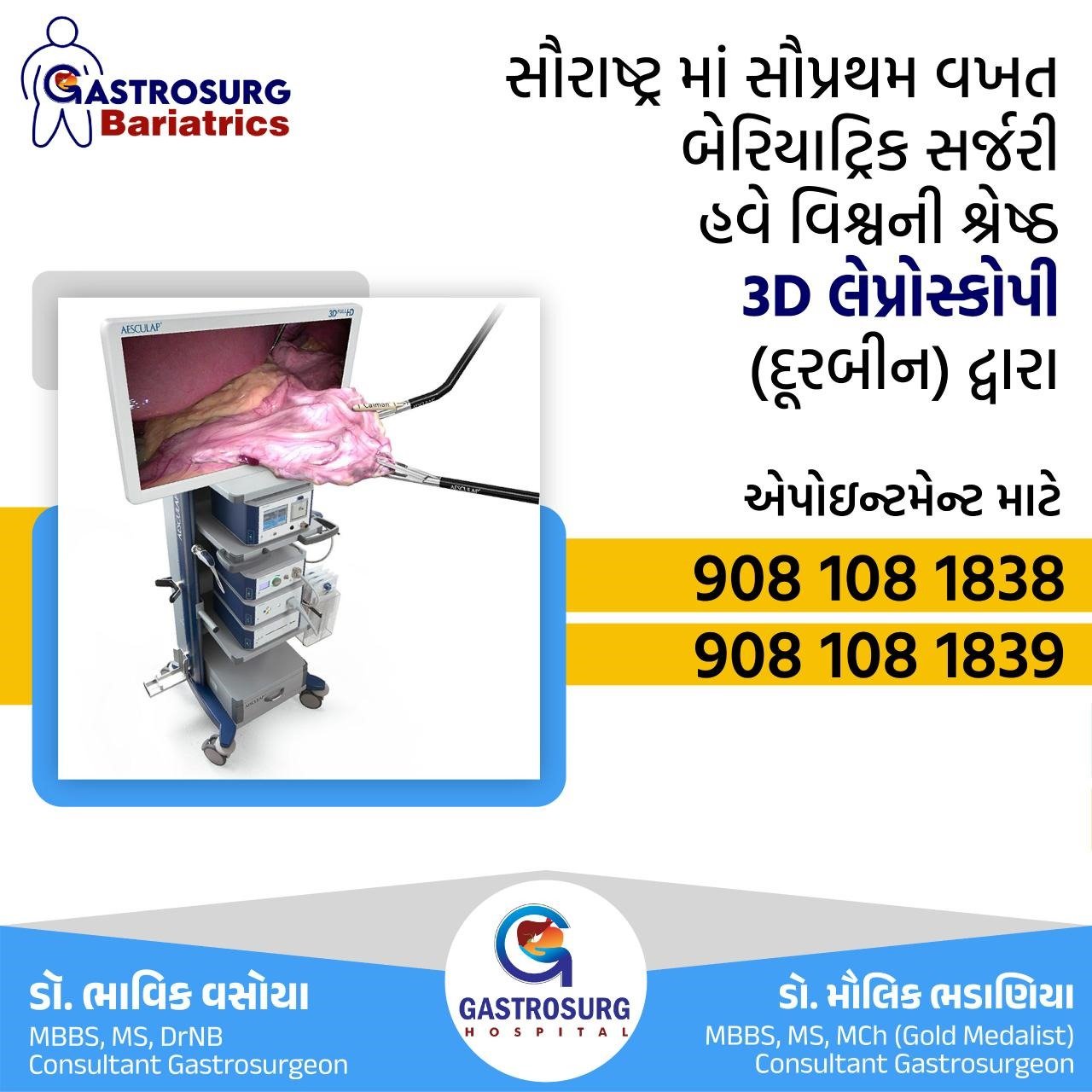 વાંકાનેર વિસ્તારમાં વધારે વજન ધરાવતા દર્દીઓને વેઇટલોસ સર્જરી માટે આગામી ગુરુવારે ડો. મિતુલ પટેલની સાહિલ સર્જીકલ હોસ્પિટલ ખાતે ખાસ રાજકોટના વેઇટલોસ સર્જરી તથા ગેસ્ટ્રો સર્જરીના સ્પેશ્યાલિસ્ટ ડોક્ટરની ઓપીડી નું આયોજન કરવામાં આવ્યું છે, જેમાં નિષ્ણાંત ડોક્ટરો દ્વારા ઓવર વેઇટ દર્દીઓને સફળ સર્જરી માટે યોગ્ય નિદાન, સારવાર તથા યોગ્ય માર્ગદર્શન આપવામાં આવશે….
