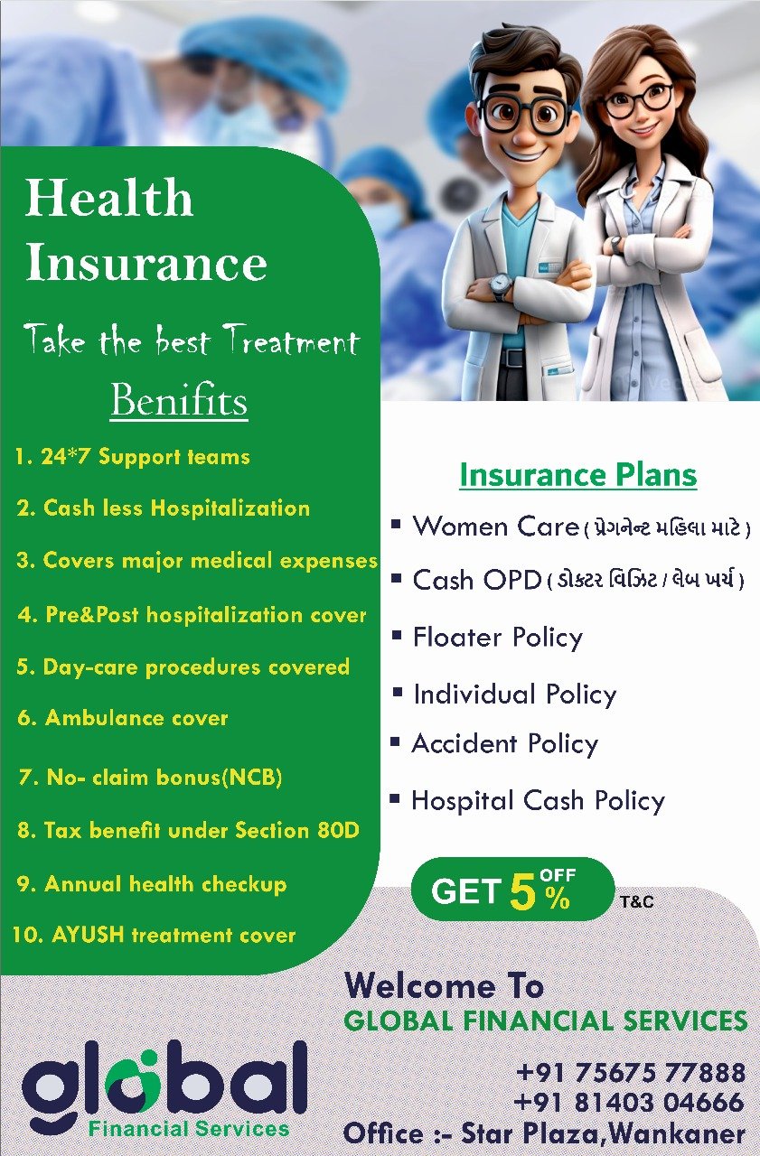 ૨). હેલ્થ ઇન્સ્યોરન્સ : 5% ડિસ્કાઉન્ટ*