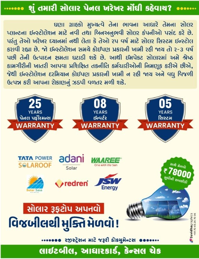 • સર્વશ્રેષ્ઠ સર્વિસ એટલે ઇમ્પેક્ટ સોલાર…