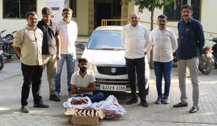 વાંકાનેર તાલુકા પોલીસ ટીમ દ્વારા ચોક્કસ ખાનગી બાતમીના આધારે જોધપર ગામના પાટીયા નજીક નેશનલ હાઈવે પર વોચ ગોઠવી અહીંથી પસાર થતી અલ્ટો કાર નંબર GJ-24-K-4395ને અટકાવી તલાશી લેતા કારમાંથી કુલ 220 નંગ વિદેશી દારૂની બોટલો મળી આવી હતી, જેથી પોલીસે કાર ચલાવનાર રાહુલભાઈ ગોપાલભાઈ ચુડાસમા (રહે. વાવડી, મોરબી)ને સ્થળ પરથી વિદેશી દારૂ, એક મોબાઇલ ફોન તથા કાર સહિત કુલ રૂ. 1,60,000 ના મુદ્દામાલ સાથે ઝડપી લીધો હતો…