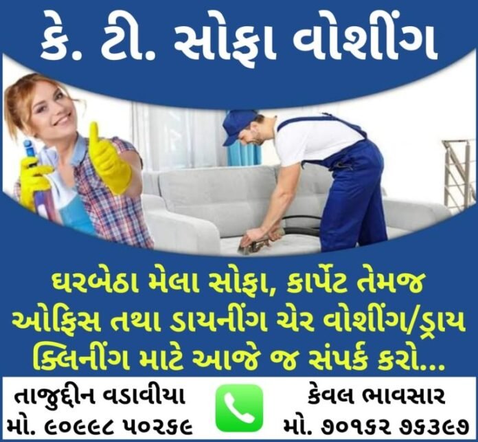 સમગ્ર વાંકાનેર વિસ્તારમાં એકદમ વ્યાજબી દરેથી સોફા ડ્રાય ક્લિનીંગ માટે આજે જ સંપર્ક કરો…