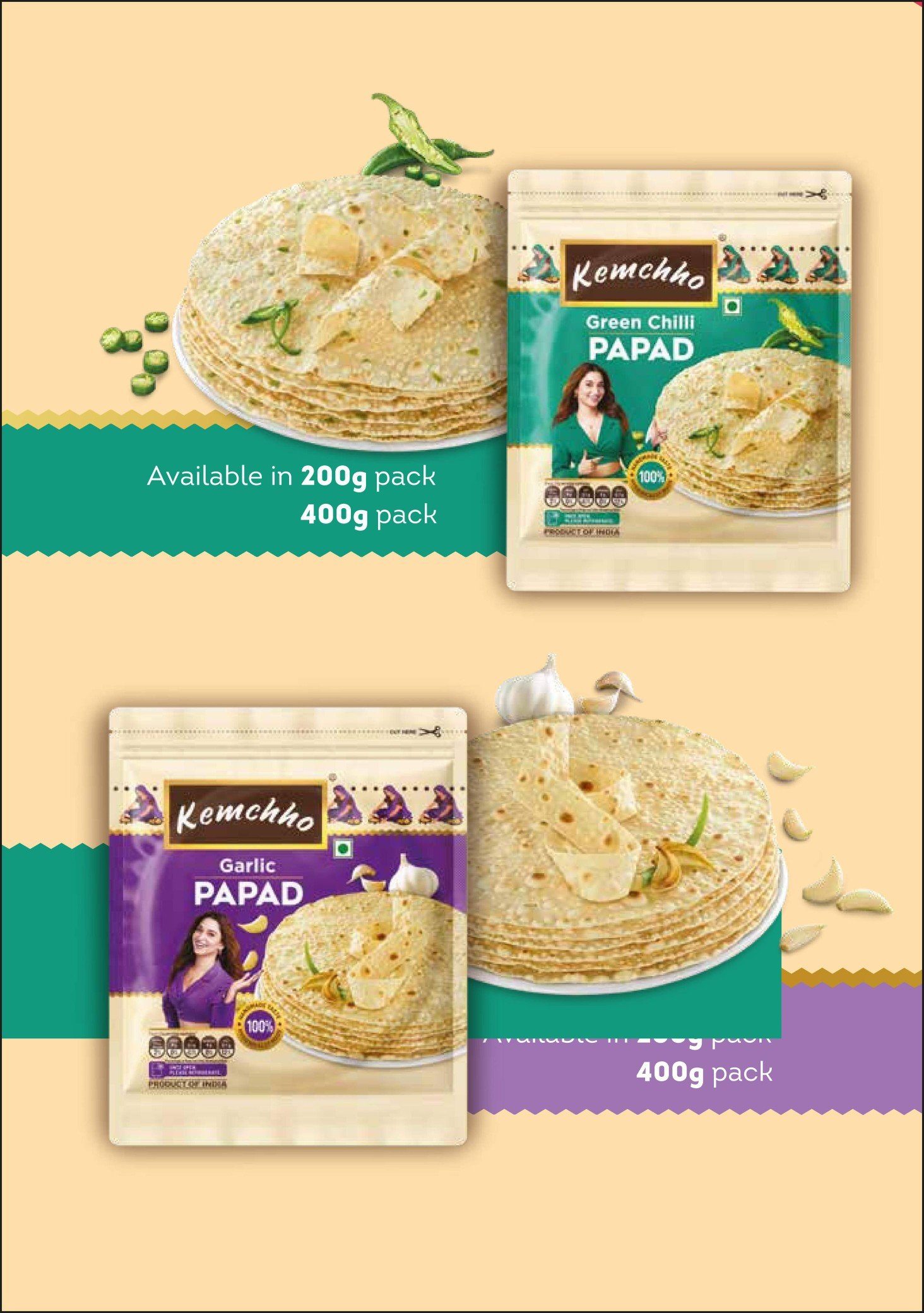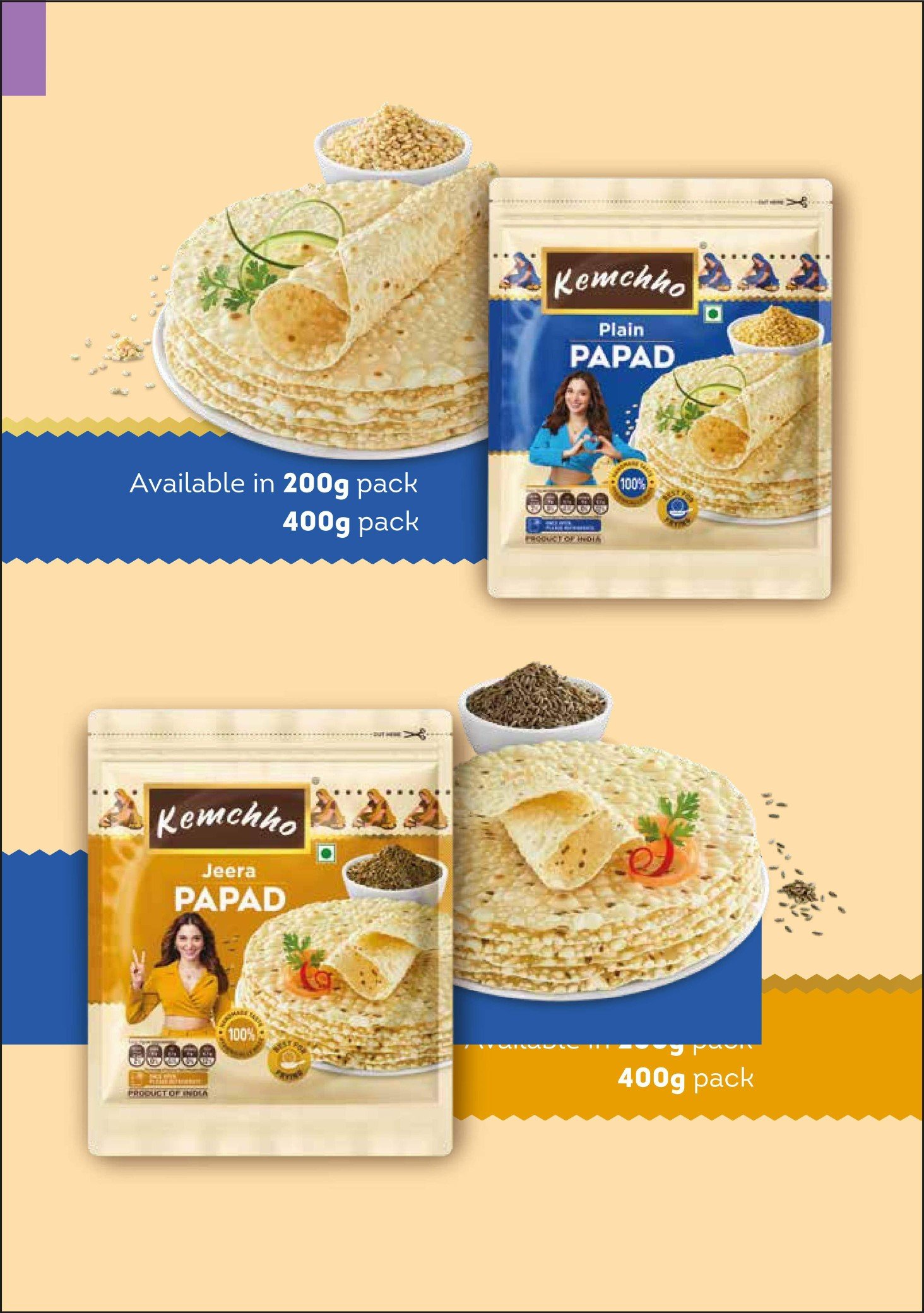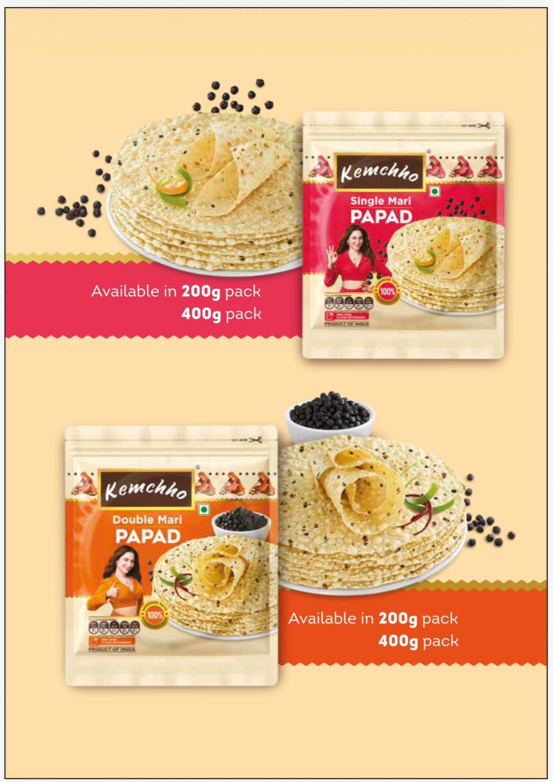 કેમ છો પાપડ શુદ્ધ ગાય બેસન, શુદ્ધ મસાલા અને પરંપરાગત રીતથી બનાવવામાં આવેલ હોય, જેનાથી દરેક પાપડમાં ગ્રાહકોને ઘરગથ્થુ સ્વાદની અનુભૂતિ મળી રહે છે. હાલ બજારમાં કેમ છો પાપડની પ્લેન પાપડ, ગ્રીન ચિલી પાપડ, સિંગલ મરી પાપડ, જીરા પાપડ, ગાર્લીક પાપડ, ડબલ મરી પાપડ ફ્લેવર ઉપલબ્ધ હોય, જેથી પાપડમાં પણ તદ્દન નવા સ્વાદનો અનુભવ કરવા આજે જ લાવો ‘ કેમ છો ‘ પાપડ….