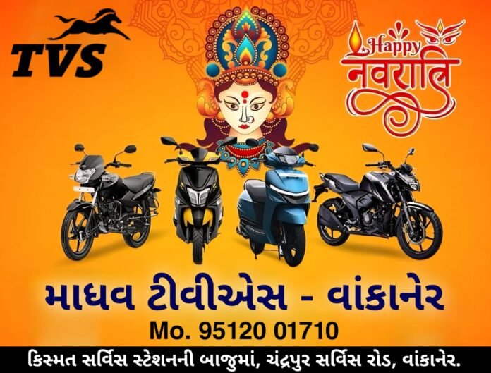 નવરાત્રી તહેવાર નિમિત્તે માધવ TVS વાંકાનેર લાવ્યું છે ઓફરોનો ખજાનો…: ટુ વ્હીલરના બુકિંગ માટે આજે જ સંપર્ક કરો…