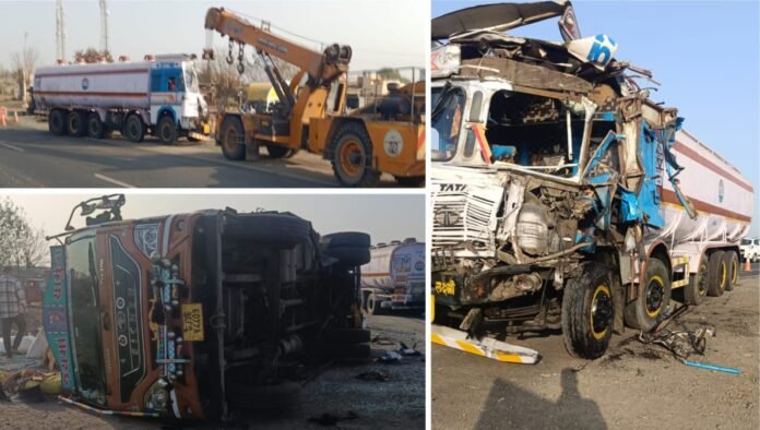 બનાવની પ્રાપ્ત વિગતો અનુસાર, આજરોજ સવારે મહીકા ગામ નજીકના હાઇવે પરથી એક ટ્રક ટેન્કર નંબર GJ 12 BW 7013 પસાર થઈ રહ્યું હતું. આ દરમિયાન ટેન્કરના ચાલકે આગળ જતા આઇસર ટ્રક નંબર GJ 36 V 4409 ને પાછળથી ધડાકાભેર ટક્કર મારી હતી. જેના કારણે આઇસર ટ્રકના ચાલકે સ્ટીયરિંગ પરથી કાબૂ ગુમાવી દેતા આઇસર હાઇવે પર ધડાકાભેર પલ્ટી મારી ગયું હતું. અકસ્માતને પગલે હાઇવે પર થોડા સમય માટે ટ્રાફિકના દ્રશ્યો સર્જાયા હતા, જે બાદ હાઇવે ઓથોરિટીની ટીમ તાત્કાલિક ધોરણે ઘટનાસ્થળે દોડી જઇ ક્રેઇનની મદદથી પલ્ટી ખાઈ ગયેલા આઇસર ટ્રક અને ટેન્કરને હાઇવે પરથી દૂર ખસેડી ટ્રાફિક વ્યવહાર ફરીથી રાબેતા મુજબ શરૂ કરાવ્યો હતો….