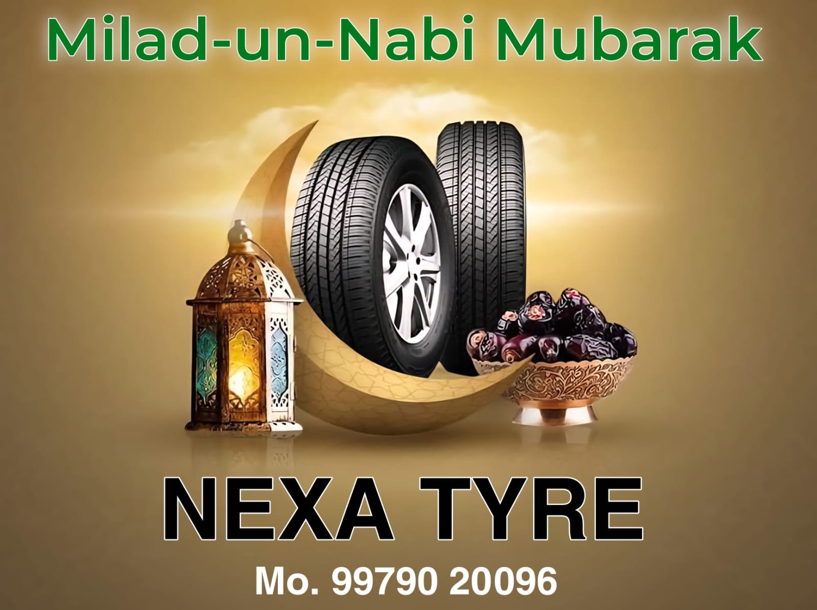વાંકાનેર શહેર નજીક હાઇવે પર દરેક પ્રકારના વાહનોના ટાયરના ટોટલ સોલ્યુશન ધરાવતા અત્યાધુનિક શોરૂમ એવા ‘ નેક્ષા ટાયર ‘ તરફથી આજે ઈદ-એ-મિલાદના તહેવાર નિમિત્તે તમામ મુસ્લિમ બિરાદરોને તહે દીલથી શુભકામનાઓ/ મુબારકબાદી પાઠવવામાં આવી છે…
