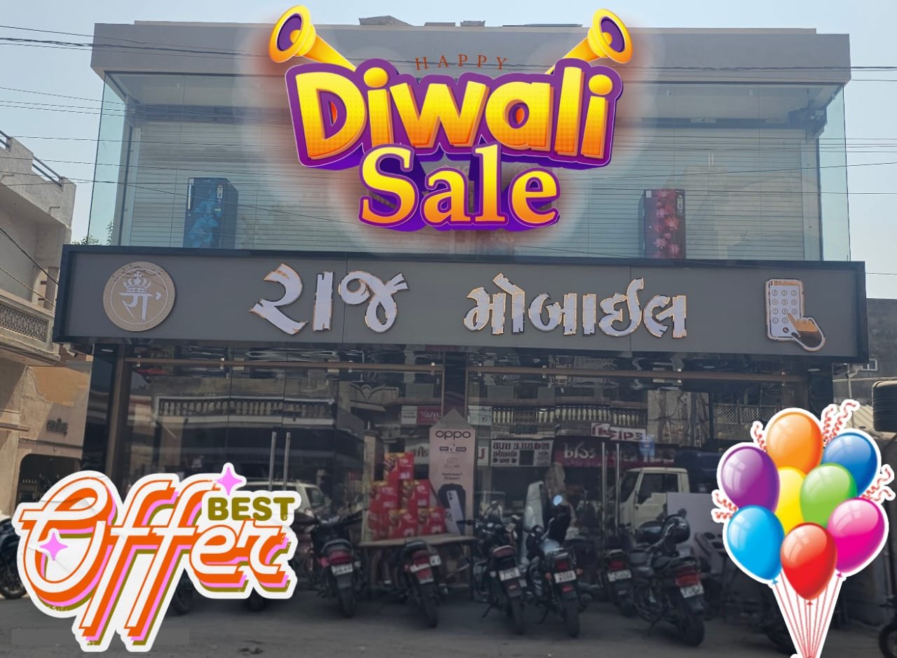 નવા વિશાળ શોરૂમ સાથે આ દિવાળી ઉજવો રાજ મોબાઇલ & ઇલેક્ટ્રોનિક્સને સંગ : કોઇપણ મોબાઇલની ખરીદી પર 20% ડિસ્કાઉન્ટ સાથે શ્યોર ગિફ્ટ બિલકુલ ફ્રી….