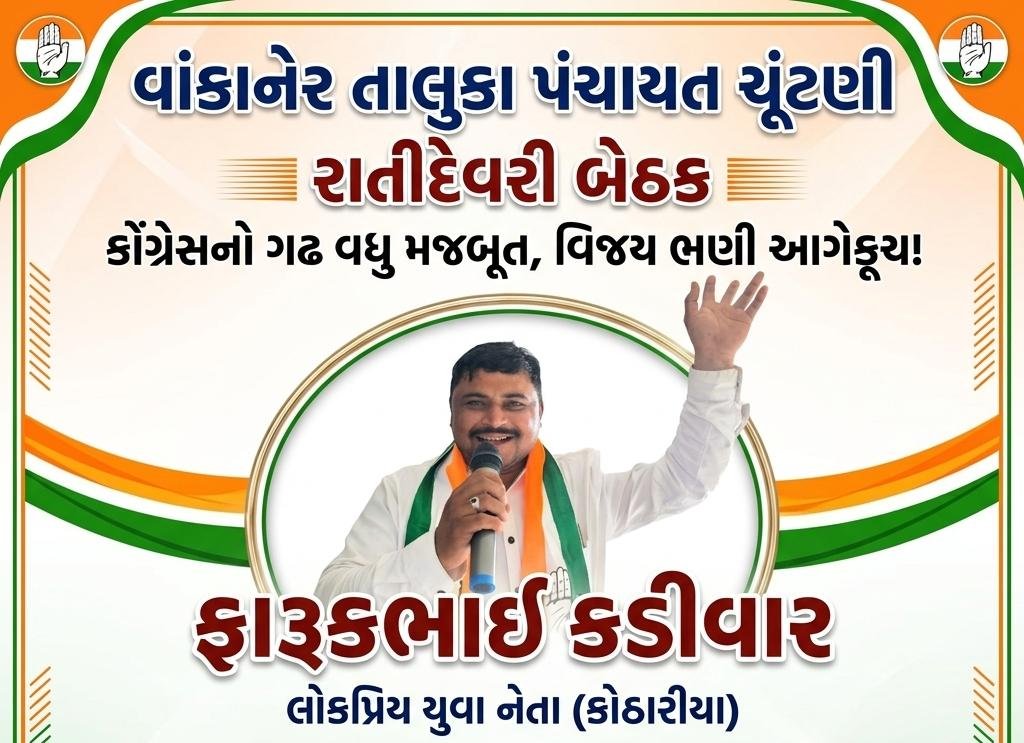વાંકાનેરની રાતીદેવરી બેઠક પર કોંગ્રેસની વિજય કુચ : કોંગ્રેસના ગઢમાં યુવા નેતા ફારૂકભાઈ કડીવારને મળતું જંગી જનસમર્થન….