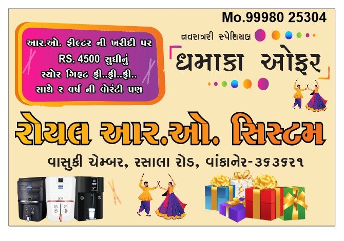 રોયલ આર.ઓ. સિસ્ટમ નવરાત્રી સ્પેશ્યલ ધમાકેદાર ઓફરો...