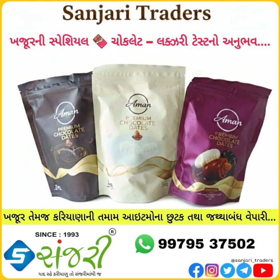 • પ્રીમિયમ ચોકલેટ ખજૂર – Assorted Milk, Dark & White ફ્લેવર સાથે