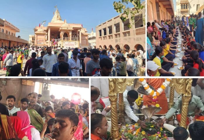 વાંકાનેરથી દસ કિલોમીટરના અંતરે આવેલ પ્રસિદ્ધ સ્વયંભૂ શ્રી જડેશ્વર મહાદેવ મંદિરે આજે મહાશિવરાત્રીના પાવન અવસરે સૌરાષ્ટ્ર અને ગુજરાતભરમાંથી હજારો ભાવિકો દર્શનાર્થે ઉમટી પડ્યા હતા અને પૂજન-અર્ચનનો લાભ લીધો હતો. મહાશિવરાત્રી નિમિત્તે વહેલી સવારથી જ મંદિરમાં ભાવિકોની લાંબી કતારો જોવા મળી હતી. દાદાને વિશેષ શણગાર કરવામાં આવ્યો હતો અને પૂજન-અર્ચન કરવામાં આવ્યું હતું….