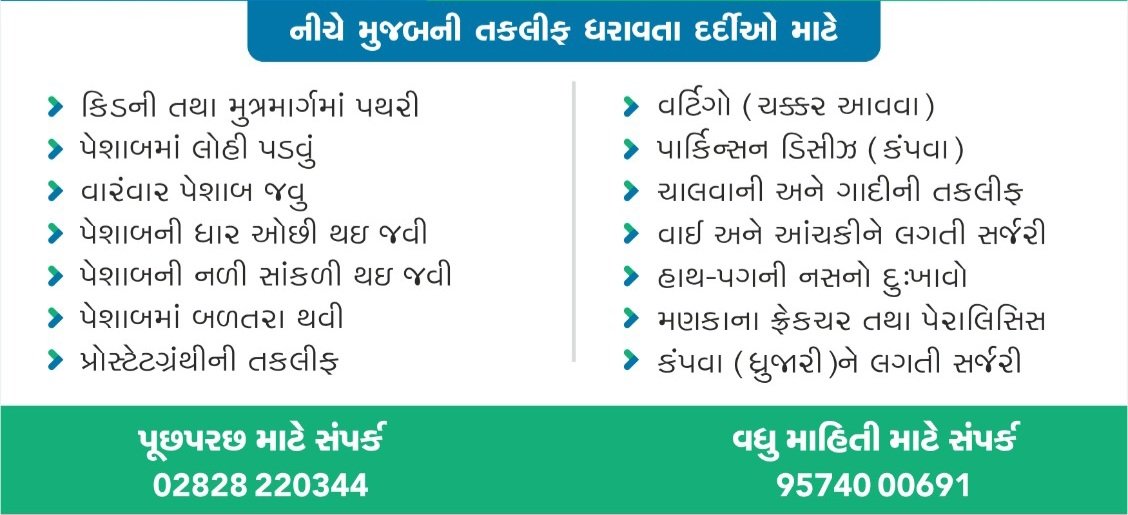 કેમ્પમાં મગજ તથા મુત્ર માર્ગના નિષ્ણાંત ડોક્ટરો દ્વારા સેવા અપાશે….