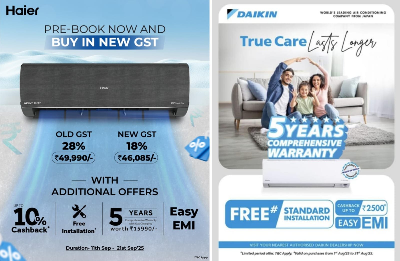 • Daikin, TATA Voltas. IFB જેવી બ્રાન્ડેડ કંપનીઓના એર કન્ડિશનની ખરીદી પર કંપનીના સર્વિસ સેન્ટર દ્વારા સ્ટાન્ડર્ડ ઇન્સ્ટોલેશન ફ્રી…