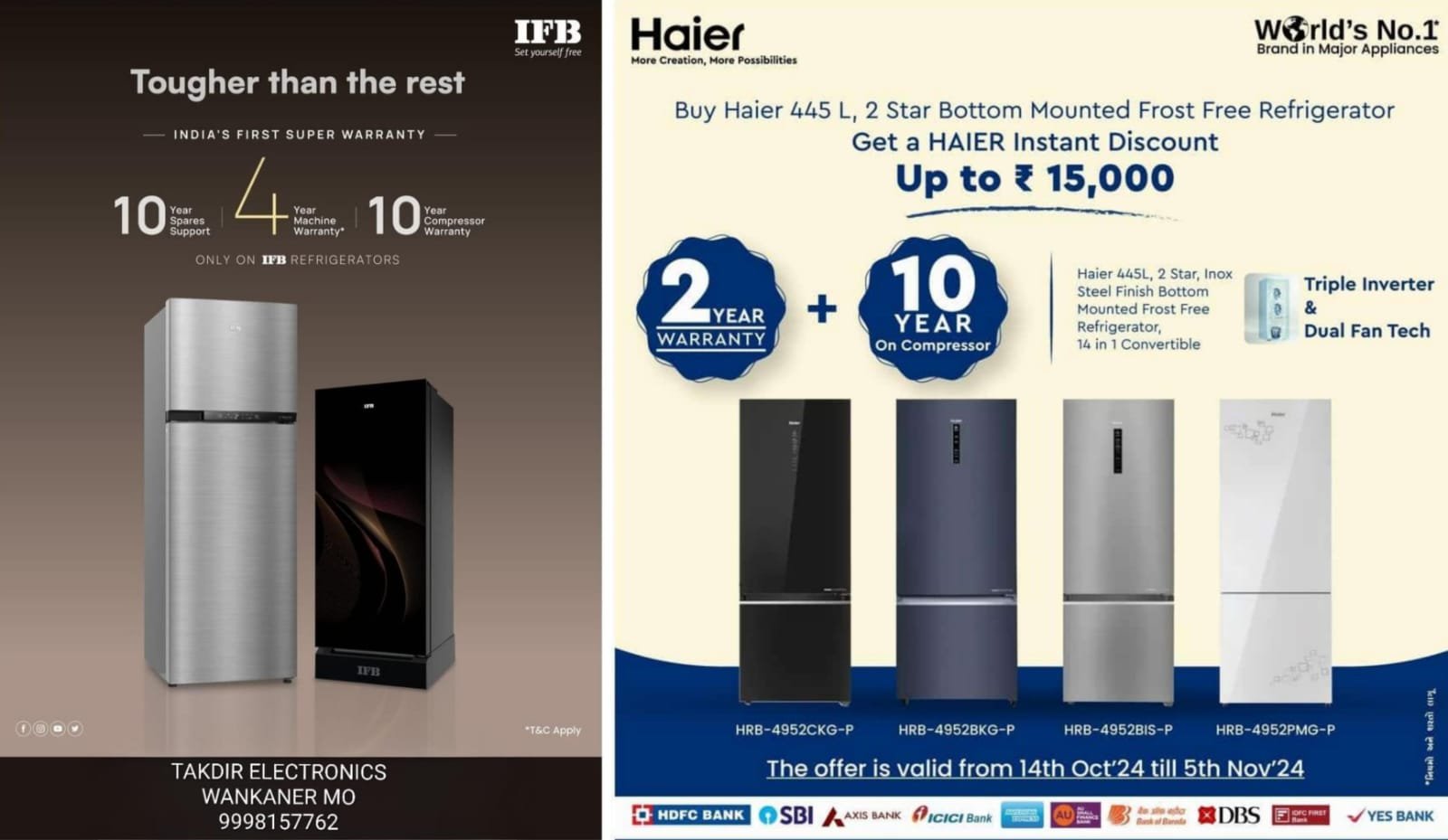 • હાયર કંપનીના ફ્રીજની ખરીદી પર કંપનીના ઓથોરાઇઝ સર્વિસ સેન્ટર દ્વારા બે વર્ષની વોરંટી…