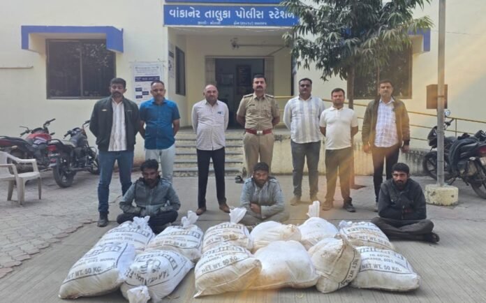 બનાવની પ્રાપ્ત વિગતો મુજબ વાંકાનેર તાલુકા પોલીસ ટીમ દ્વારા ચોક્કસ ખાનગી બાતમીના આધારે વાંકાનેરના તરકીયા ગામની સીમમાં શેખડો તરીકે ઓળખાતી ખરાબાની જગ્યામાં દરોડો પાડી સ્થળ પરથી 600 લિટર દેશી દારૂ તથા 400 લિટર દારૂ બનાવવા માટેનો ગરમ તથા ઠંડો આથા સહિત કુલ રૂ. 1,30,150 ના મુદ્દામાલ સાથે આરોપી વિજયભાઈ ભુપતભાઈ મકવાણા, વિપુલભાઈ ભુપતભાઈ મકવાણા (રહે. બંને તરકીયા) અને વિશાલભાઈ રવજીભાઈ મકવાણા (રહે. નારીયેળી) ને ઝડપી પાડી હતી તમામ આરોપીઓ વિરુદ્ધ વાંકાનેર તાલુકા પોલીસમાં પ્રોહીબીશન એક્ટ હેઠળ ગુનો નોંધી કાયદેસરની કાર્યવાહી હાથ ધરી છે…