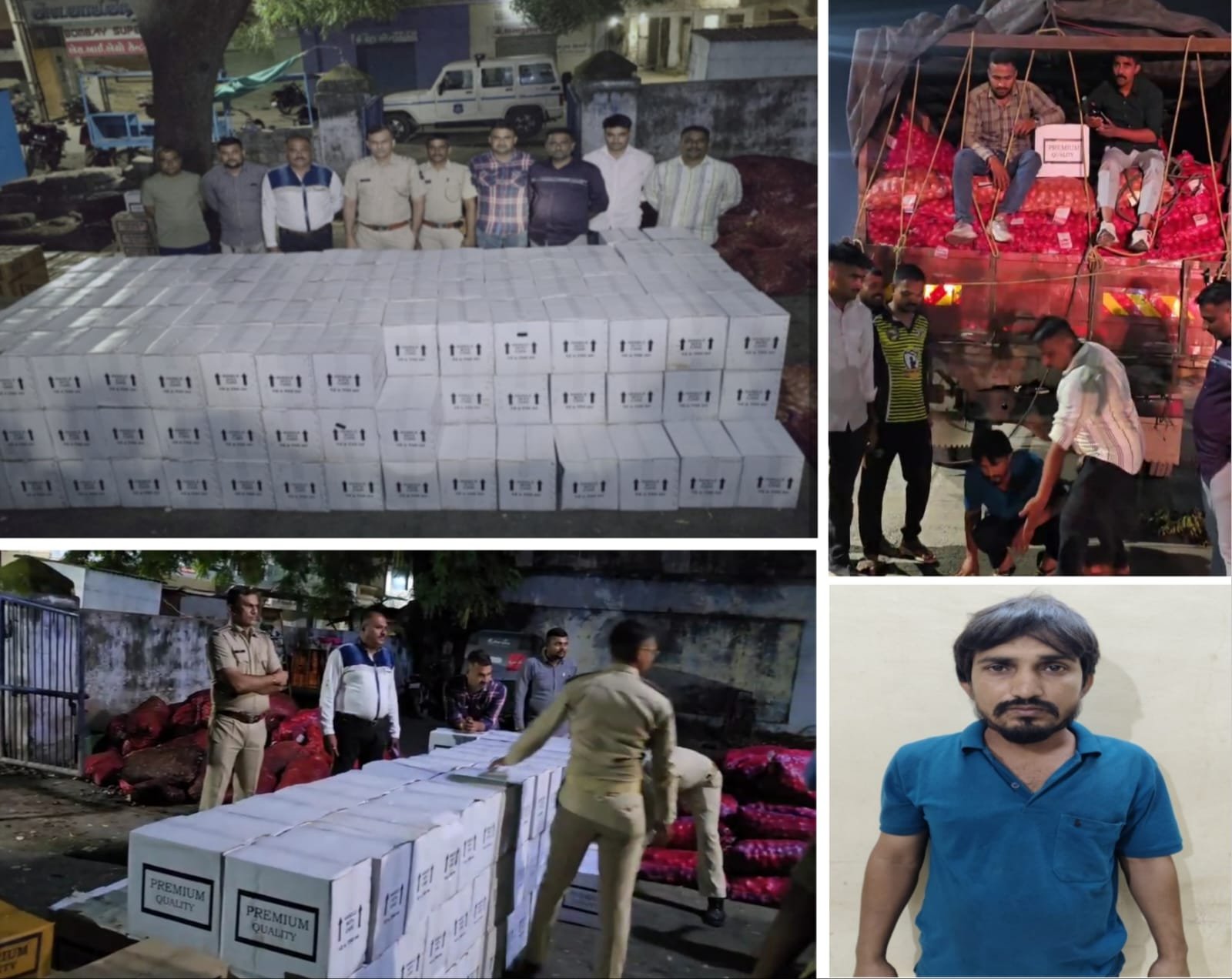 બનાવની પ્રાપ્ત વિગતો મુજબ વાંકાનેર સીટી પોલીસને ખાનગી રાહે બાતમી મળી હોય કે, એક ટાટા આઇસર નં. GJ 12 BX 5679 માં સડેલી અને સારી ડુંગળીની આડમાં વિદેશી દારૂ ભરીને વાંકાનેર બાઉન્ડ્રી તરફથી મોરબી તરફ જઈ રહ્યો હોય, જેના આધારે જકાતનાકા પાસે પોલીસે વોચ ગોઠવી આઇસરનો પીછો કરી વઘાસીયા ટોલનાકા નજીકથી વાહનને પકડી તલાશી લેતા ડુંગળીના જથ્થા નીચેથી એવરગ્રીન વ્હીસ્કીની 750 મીલીની 4078 બોટલ અને રોયલ સિલેક્ટની 180 મીલિની 2784 બોટલ તથા રીતઝ વ્હીસ્કીના 180 MLના 656 ક્વાર્ટર, અને ડુંગળીના 80 કટા સહિત કુલ રૂ. 60,02,220 ના મુદ્દામાલ સાથે આરોપી મોહમદઉસ્માન મોહંમદઉંમર મેવુ (રહે. હરિયાણા)ની ધરપકડ કરી તપાસનો ધમધમાટ શરૂ કર્યો છે….