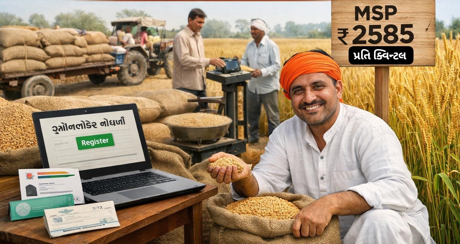 નોંધણી માટે આધાર કાર્ડની નકલ, અદ્યતન ગામ નમૂનો ૭/૧૨ અને ૮-અ, તેમજ જો પાક વાવણીની એન્ટ્રી ન થઈ હોય તો તલાટી દ્વારા સહી-સિક્કા સાથેનો દાખલો, તેમજ બેંક પાસબુક અથવા કેન્સલ ચેકની નકલ રજૂ કરવાની રહેશે…