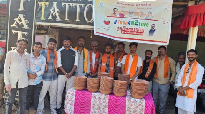 વિશ્વ ચકલી દિવસ નિમિતે વાંકાનેર ખાતે ભારતીય જનતા પાર્ટીના યુવા મોરચા દ્વારા #Yuva4Nature અભિયાન અંતર્ગત પ્રકૃતિ સંરક્ષણ માટે પાણીના કુંડા વિતરણના કાર્યક્રમનું આયોજન કરવામાં આવ્યું હતું. આ અભિયાન દ્વારા યુવાનોમાં પર્યાવરણ પ્રત્યે જાગૃતિ લાવવા અને પ્રકૃતિ સાથે જોડાવાનો સંદેશ આપવામાં આવ્યો હતો….
