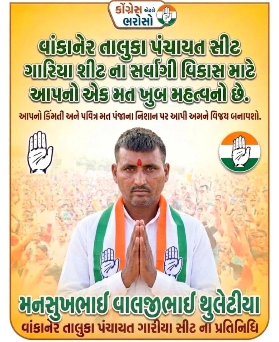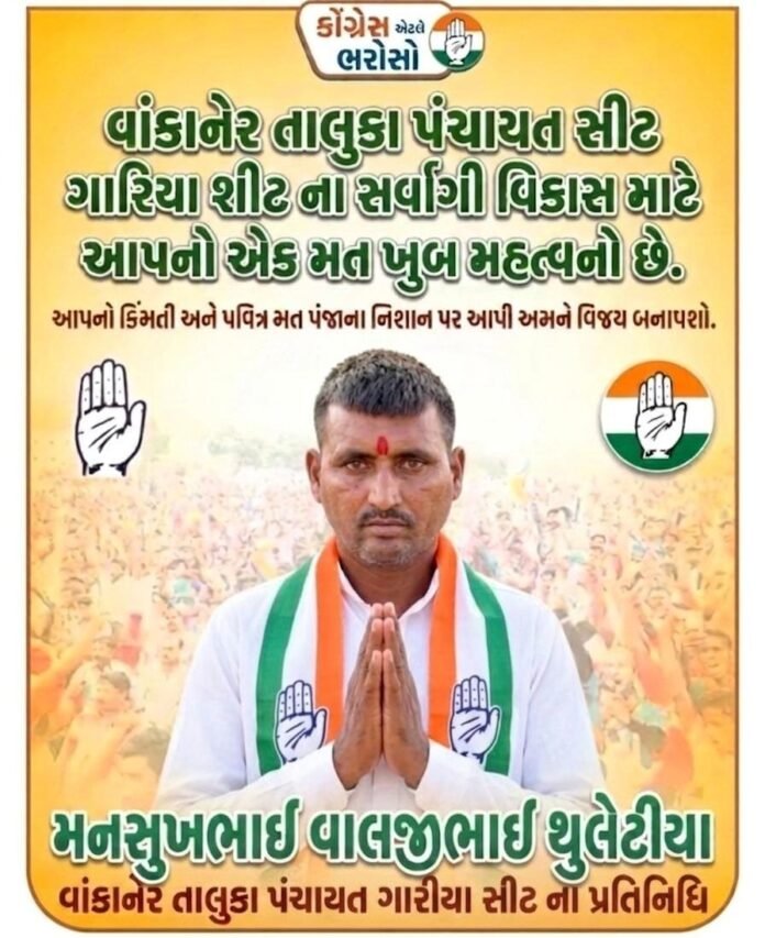 આ વખતેની ચૂંટણીમાં ગારીયા ગામના સ્થાનિક અને કોંગ્રેસમાં મજબૂત પકડ ધરાવતા પારદર્શક આગેવાન મનસુખભાઈ વાલજીભાઈ થુલેટીયાના ધર્મપત્ની દુધિબેનને કોંગ્રેસ પાર્ટીએ પોતાની સત્તાવાર ટિકિટ આપી છે. આ વિસ્તારમાં મનસુખભાઈ અને તેમનો પરિવાર કોઈપણ પ્રકારના જ્ઞાતિવાદ કે વાદ-વિવાદથી દૂર રહીને સર્વ સમાજને મદદરૂપ થવાની ભાવના ધરાવો હોય તેમજ ઉચ્ચ શિક્ષણ સ્તર ધરાવતા થુલેટીયા પરિવાર વર્ષોથી અનેકવિધ સામાજિક અને સેવાકીય કાર્યો સાથે સીધી રીતે જોડાયેલો હોવાનો સીધો લાભ આ ચુંટણીમાં કોંગ્રેસને મળશે…