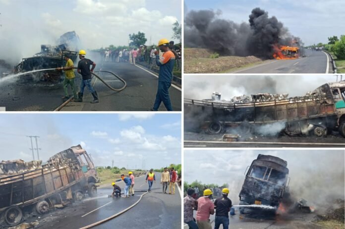 વાંકાનેરના મહિકા ગામ નજીક હાઇવે પરથી પસાર થતા ટ્રકમાં લાગી આગ, ફાયર બ્રિગેડની ટીમ ઘટના સ્થળે….