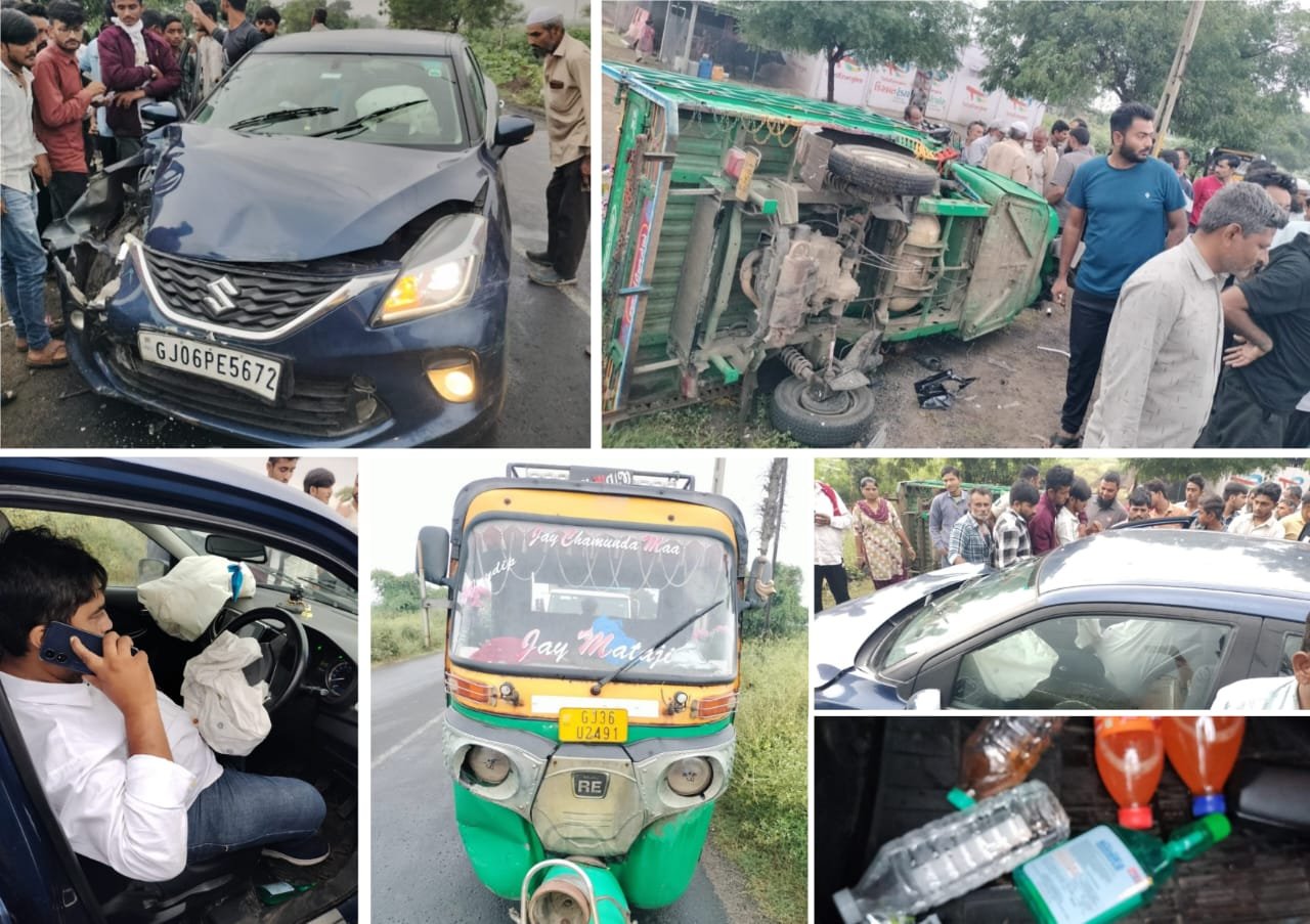 બનાવની પ્રાપ્ત વિગતો મુજબ વાંકાનેર તાલુકાના પીપળીયા રાજ ગામ નજીક પુરપાટ ઝડપે ડમ ડમ બની પસાર થતા એક કાર ચાલકે અહીંથી પસાર થતી એક સીએનજી રીક્ષા તથા માલ વાહક રીક્ષાને હડફેટે લેતા ગમખ્વાર ત્રિપલ અકસ્માત સર્જાયો હોય, જેમાં માલ વાહક રીક્ષા પલ્ટી ખાઇ ગઇ હતી, જ્યારે સીએનજી રીક્ષામાં નુકસાની પહોંચી હતી. આ અકસ્માતના બનાવમાં બે લોકોને ઇજાઓ પહોંચતા તેમને સારવાર માટે હોસ્પિટલ ખાતે ખસેડાયા હતા. અકસ્માતના પગલે ગામ લોકો એકઠા થઈ કાર ચાલકને ઘેરી લેતા કારમાં વિદેશી દારૂની બોટલો સાથે ચાલક નશામાં ધૂત હોવાનું સામે આવ્યું હતું. જે બાદ બનાવની જાણ પોલીસને કરતા પોલીસે કાર ચાલકને આગળની કાર્યવાહી માટે થાણા ખાતે લઈ ગયા હોવાની વિગતો મળી રહી છે….